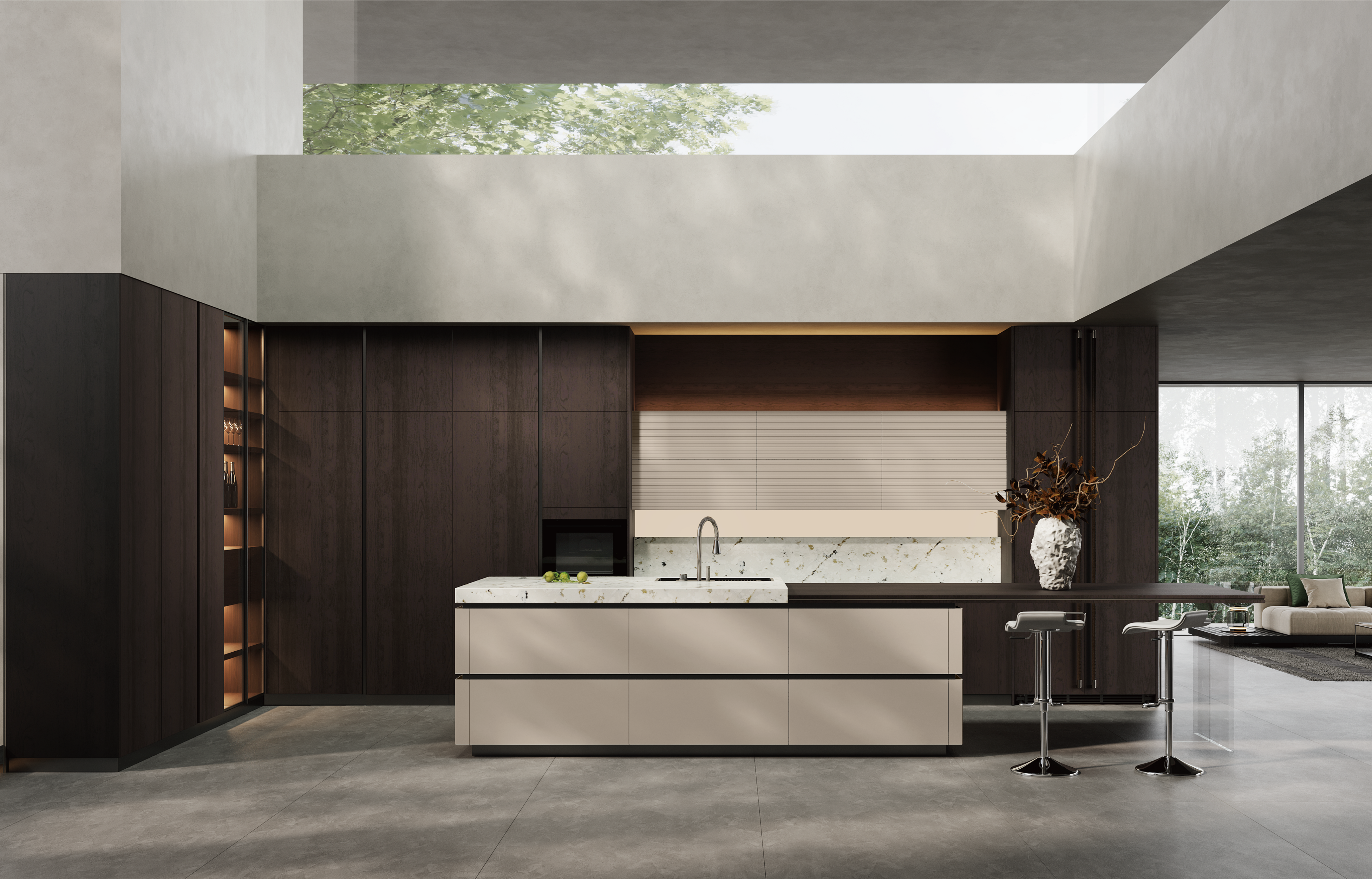 通过NG28电子厨柜量体裁柜,定制出适合主厨下厨的烹饪区和洗涤区的舒适高度。